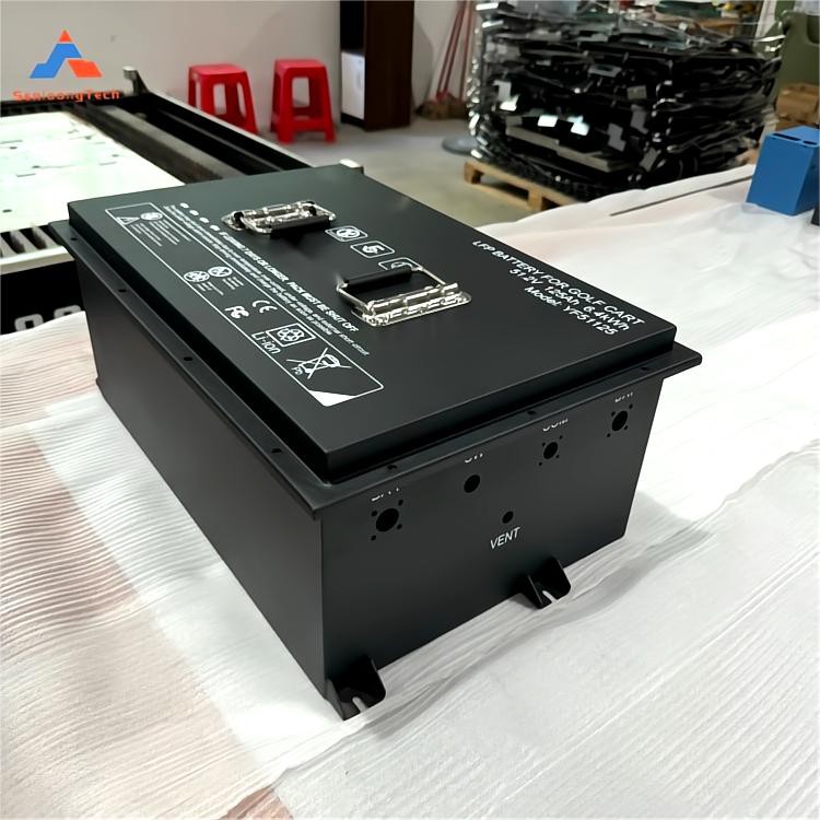 Es tracta d’una caixa de bateries de carro de golf de 48V, que s’utilitza principalment per allotjar i protegir les bateries utilitzades en els carros de golf elèctrics. Fabricat en aliatge d'alumini o acer d'alta- de qualitat, té una excel·lent resistència a l'impacte i pot assegurar l'ús llarg de terme - en diversos entorns. La superfície ha estat sotmès a un tractament especial i té funcions de corrosió anti -rovell i anti -, cosa que la fa adequada per a un ús exterior. Tot i que es van utilitzar materials metàl·lics, es va tenir en compte el pes en el disseny per assegurar la portabilitat. El color és negre (es pot personalitzar segons les necessitats) i la mida és de 509 * 334 * 230mm o personalitzada. Pot allotjar diverses mides estàndard de bateries, incloses les bateries àcides de plom - i bateries de liti, per satisfer les necessitats dels diferents usuaris. Està equipat amb un mànec per a una manipulació i moviment fàcil, adequats per a camps de golf o altres dispositius elèctrics com ara scooters elèctrics, cadires de rodes, etc.